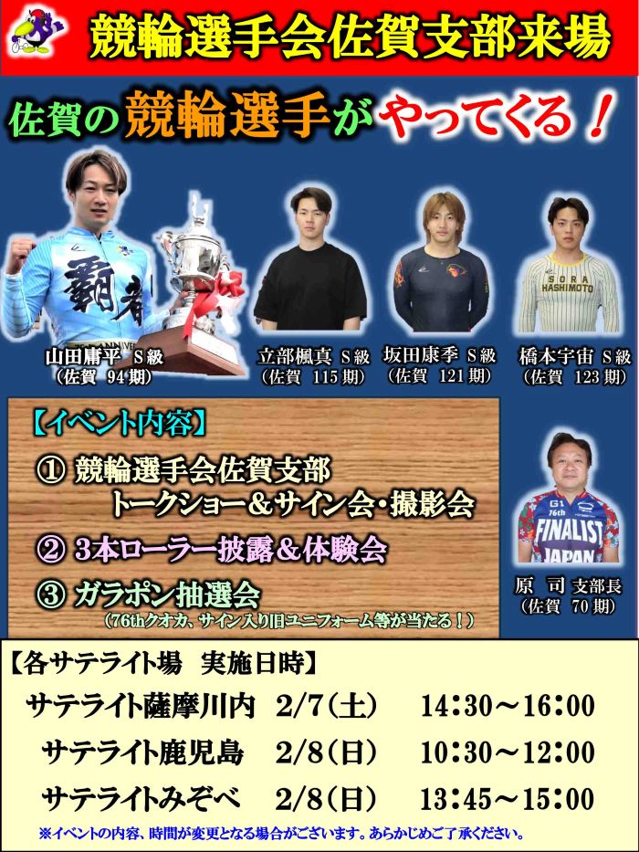 2月7日(土),8日(日) 競輪選手来場!2026/01/06